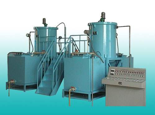 本裝置是粉狀(或液態(tài))高分子凝絮劑的全自動(dòng)連續(xù)配置及投加系統(tǒng)。干粉絮凝劑從螺旋推進(jìn)器內(nèi)進(jìn)入預(yù)混器與清水進(jìn)行預(yù)混,被濕潤(rùn)的物料進(jìn)入配制槽進(jìn)行稀釋,按要求濃度進(jìn)行配制;若為液態(tài)絮凝劑則由螺桿泵直接投加到配制槽中。